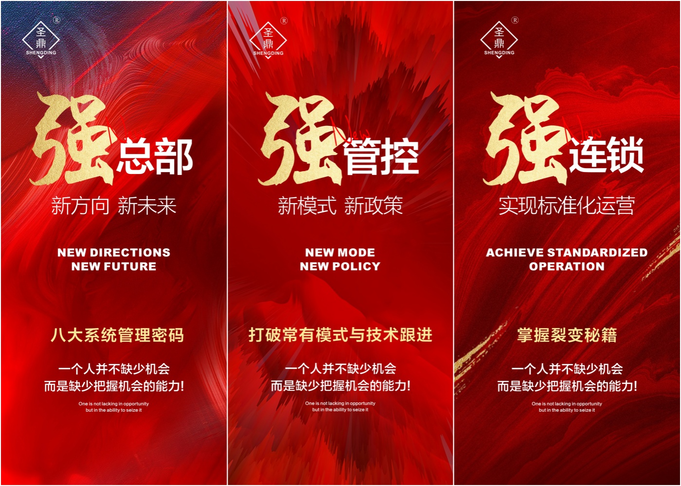 得系统者得天下,有系统才有未来!故此,此次圣鼎公司品牌、形象、战略升级发布会议将呈现八大系统工程:①行业大咖,强势赋能;②员工管理,晋升机制;③团队培养,激励机制;④人员管理,教育系统;⑤拓客留客,引爆市场;⑥店务运营,标准化管理;⑦老板思维,精细化管理;⑧品牌升级,提升竞争力。通过这八大系统工程解决目前部分加盟商门店仍然存在的主要矛盾和问题:①杨博士手把手传授高维打法,强势逆袭;解决运营手段陈旧,门店管理混乱的问题。②通过加强员工管理,用好晋升机制,培养人才,打通员工管理脉络,打造高品质门店;解决员工人才稀缺的问题。③通过如何抓好团队培养,强化激励机制,突破陈旧思维;解决团队缺乏凝聚力的问题。④通过核心管理、教育系统;解决创业守业如何更加便捷的问题。⑤通过系统如何拓客、留客、锁客,引爆市场;解决引流不精准,无法爆单爆客的问题。⑥通过建立老板思维,精细化管理,学会用人6部曲:招人、选人、识人、育人、用人、留人;解决在人员使用上缺乏系统性、精细化的问题。⑦通过店务运营采取标准化管理,实现门店持久盈利。⑧通过品牌、形象、战略升级,进一步提高行业竞争力和市场影响力。